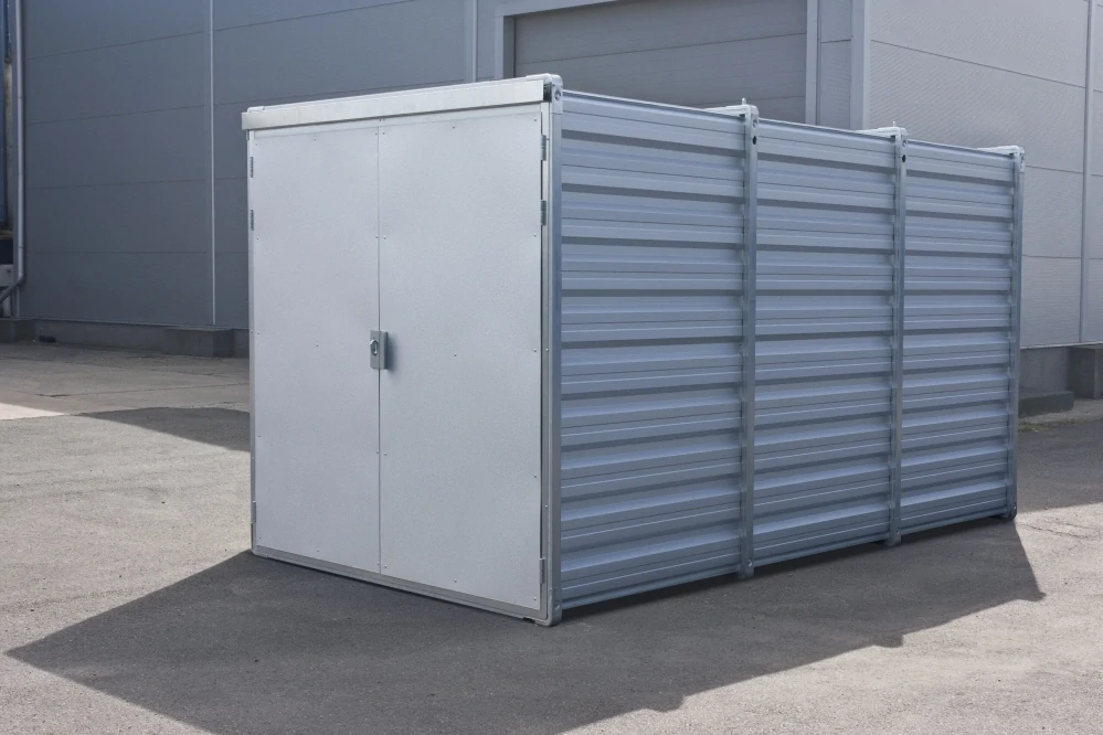 Kontejner 9M je skladovací jednotka o ploše 9 m2 s dřevěnou podlahou.